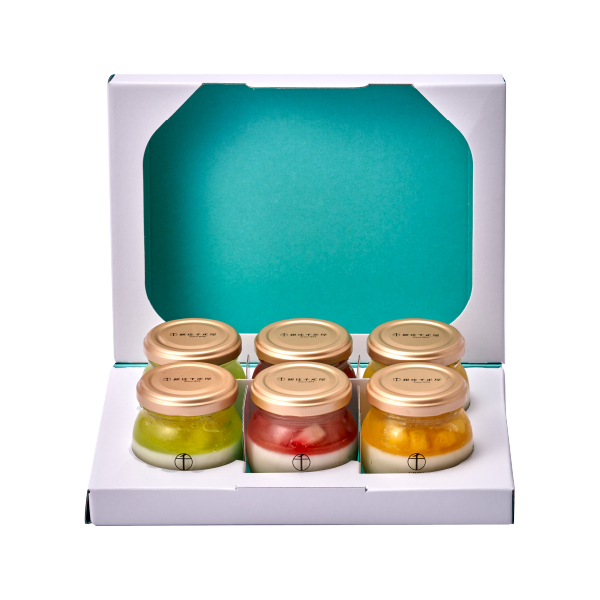 フレッシュな果物を使用したフルーツゼリーと口当たりなめらかな杏仁豆腐を瓶に閉じ込めました。見た目も楽しい彩り華やかなフルーツ杏仁をお楽しみください。