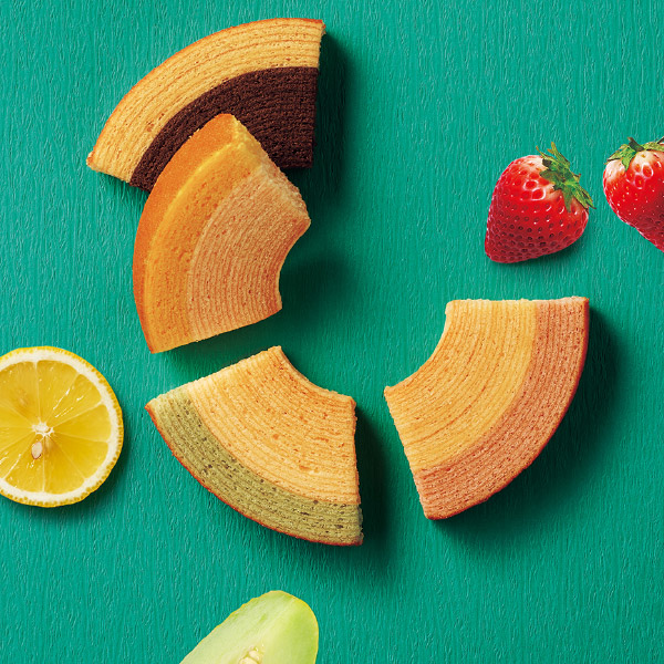 一層一層丁寧に焼き上げた生地と、果汁を加えて仕上げた生地の2つの味が絶妙なハーモニーの「フルーツクーヘン」。バターとアーモンドプードル、フルーツのピューレで焼き上げた「フルーツフィナンシェ」。