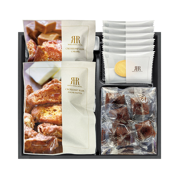 | 内容 | クロワッサンラスク(シュガーバター風味)・プチフィナンシェ(ショコラ)(6P)・クロワッサンラスク(キャラメル)×各1、クッキー(プレーンバニラ・チョコチップ)×各3 |