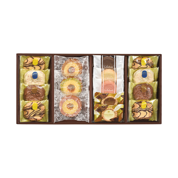 | 内容 | 2層バームクーヘン(キャラメル&ミルク・抹茶&ミルク・ストロベリー&ミルク)・ガレット(プレーン・ココア・ストロベリー)・プチタルト(ミルクチョコ・ホワイトチョコ)×各1、キャラメルチョコクッキー×4、ミルクチョコクッキー・ホワイトチョコクッキー×各2 |