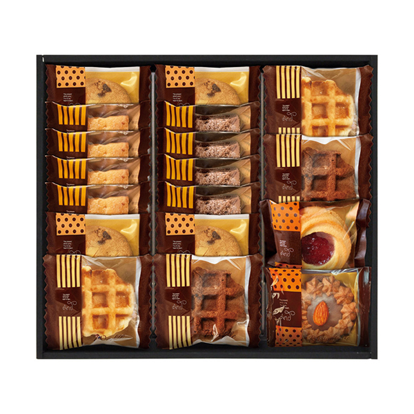 | 内容 | ロシアケーキ(ブルーベリーサン・チョコアーモンド)×各1、スクエアパイ(プレーン・ショコラ)・ナッツとチョコのざっくりクッキー×各4、ワッフル(プレーン・チョコ)×各2 |