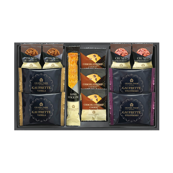 | 内容 | ロングスティックパイ×1、ゴーフレット(バニラ・ストロベリー)・チョコクランチ(ミルク・ストロベリー)×各2、チョコチップクッキー×3 |