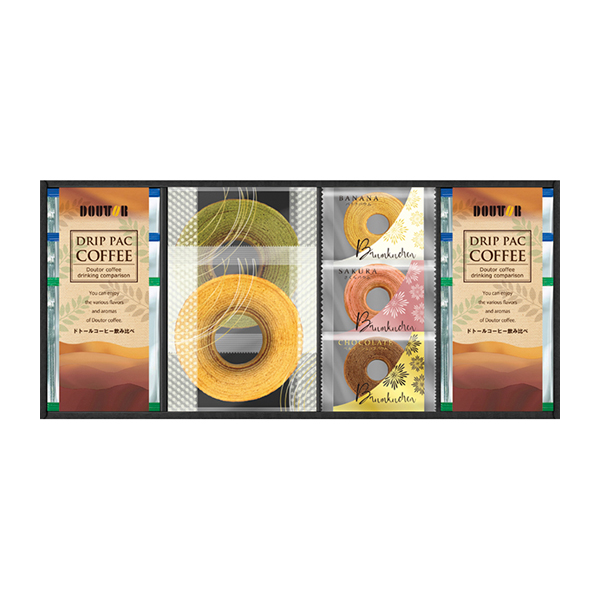 | 内容 | ミルクバウムクーヘン・宇治抹茶バウムクーヘン・ミニバウムクーヘン(バナナ・桜・ベルギーショコラ)×各1、ドトールドリップコーヒー(深煎りブレンド7g)×4、ドトールドリップコーヒー(キリマンジャロブレンド7g)×2 |