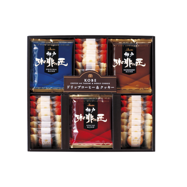 神戸珈琲の匠がこだわり抜いてブレンドした簡易ドリップコーヒーと、やさしい甘さのクッキーを組み合わせました。洋菓子の街・神戸から届く、香り高いコーヒーとお菓子のセットは、忙しい合間のブレイクタイムやくつろぎのひとときを上質に彩ります。