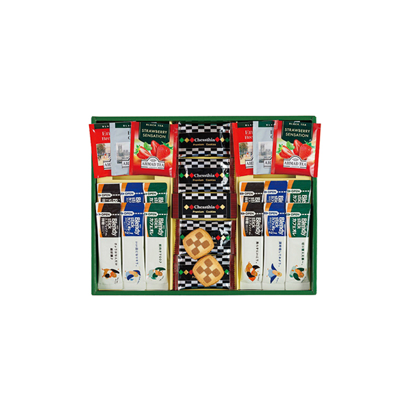 | 内容 | チェスティアクッキー×8、紅茶(アールグレイ・イングリッシュブレックファースト・ストロベリー)2g×各2、AGFブレンディスティック(エスプレッソオレ5.8g・カフェオレハーフ5.4g・カフェオレ8.2g)×各4 |