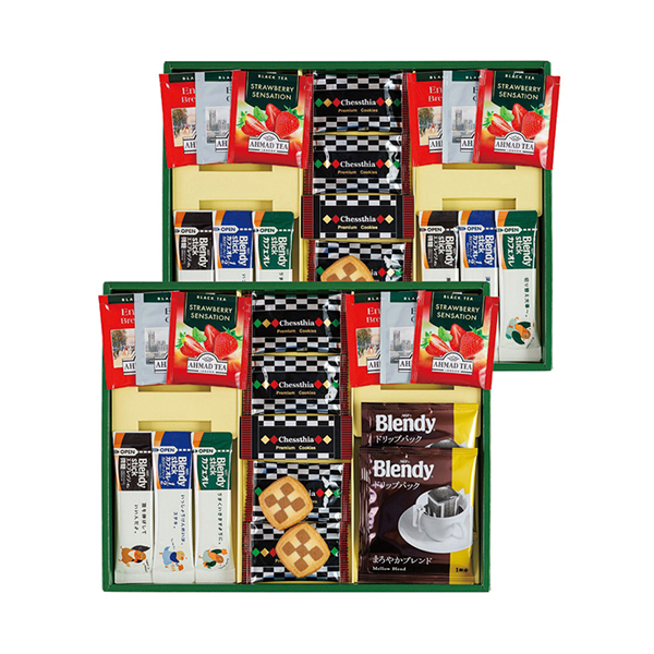 | 内容 | チェスティアクッキー×8、AGFブレンディコーヒードリップ式7g×2、紅茶(アールグレイ・イングリッシュブレックファースト・ストロベリー)2g×各4、AGFブレンディスティック(エスプレッソ・オレ5.8g・カフェオレカロリーハーフ5.4g・カフェオレ8.2g)×各3 |