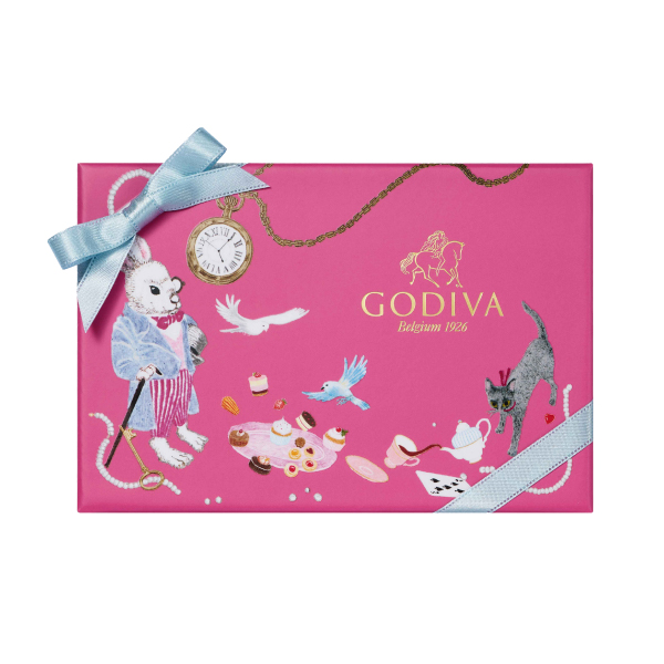 「不思議の国のアリス」の印象的なシーン「ティーパーティ」をイメージしたチョコレートを楽しめる、キュートな「アリスのティーパーティ コレクション」。 ティーパーティを彩る紅茶をイメージしたチョコレートやゴディバの100周年を記念してリニューアルされたハート形のチョコレート、シーズン限定カレなどを、物語のシンボルのトランプやティーセット、白うさぎなどを描いたパッケージに詰め合わせました。