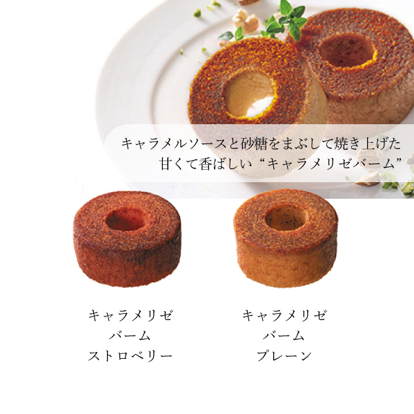 ブリュレ仕立てのしっとりバームクーヘンに一手間くわえた、少し大人のバームクーヘンの詰合せです。プレーン、ストロベリーの2種のバームクーヘンの表面に、キャラメルソースと砂糖をまぶして焼き上げました。甘くて香ばしいキャラメリゼがアクセントの絶品バームクーヘンは、結婚式の引き出物にもぴったり。個包装なので、ご家族で分けあって楽しんでも、ひとつずつゆっくり味わっても◎貰った方それぞれの楽しみ方でお召し上がりいただけます。ティータイムにぴったりのバームクーヘンです。