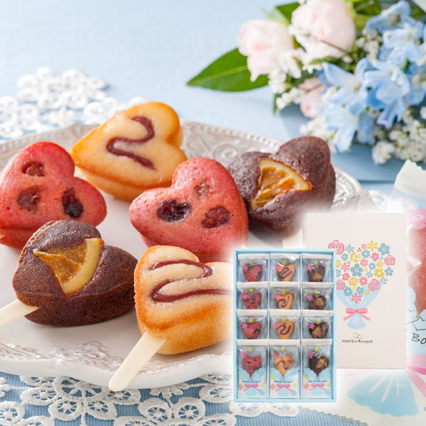 「感謝の花束」をコンセプトに、ハート形で見た目も可愛らしく焼き上げたフィナンシェです。