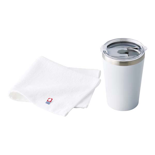 | 内容 | 蓋付真空二重構造タンブラー(直径8.8×高さ12.5cm) 400ml、ウォッシュタオル(34×30cm)×各1 |