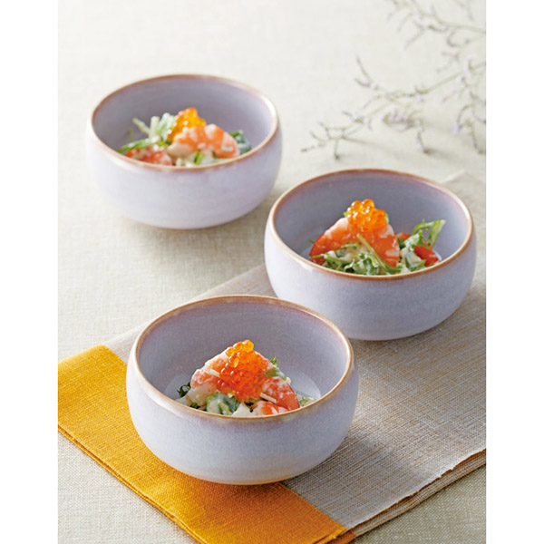 粘土と化粧土と釉薬とが重なりあった優しい色合いの萩むらさき色の小鉢揃です。白色の化粧土で薄っすら表情が付いています。おしゃれなカラーなので若い方から年配の方まで幅広い方に喜んでいただけます。結婚祝いや引っ越し、新居祝いなどのプレゼントにもおすすめです。