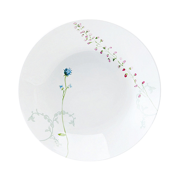 少女が野の花を摘む情景を描いたエインズレイ カミール パスタボウル。電子レンジ・食洗機対応で日常使いにも便利。美しいデザインが食卓を華やかに彩り、贈り物としても喜ばれる上品な一品です。