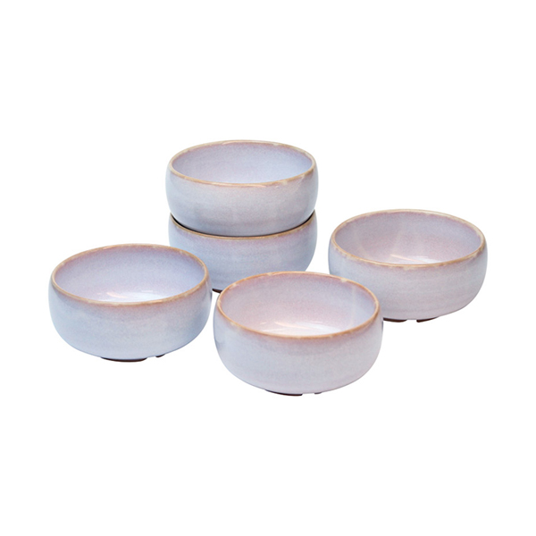 粘土と化粧土と釉薬とが重なりあった優しい色合いの萩むらさき色の小鉢揃です。白色の化粧土で薄っすら表情が付いています。おしゃれなカラーなので若い方から年配の方まで幅広い方に喜んでいただけます。結婚祝いや引っ越し、新居祝いなどのプレゼントにもおすすめです。
