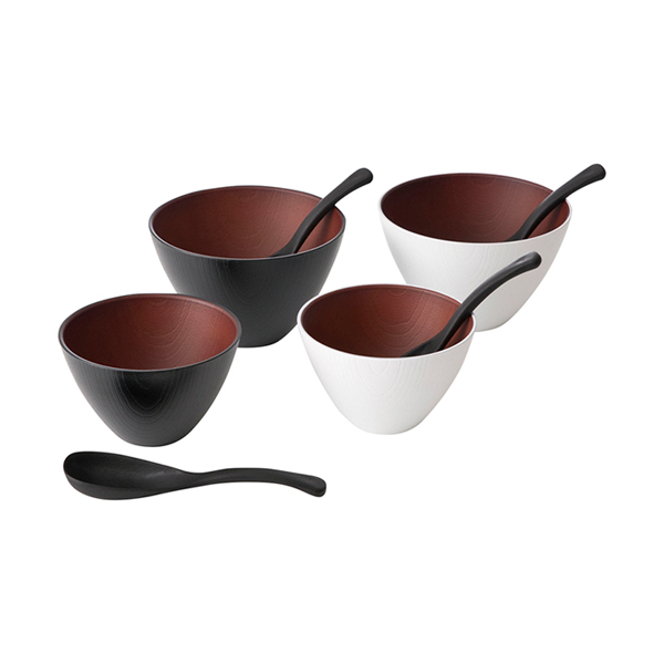 | 内容 | ボウル(小):直径10.8×6.8cm(320ml)・ボウル(大):直径12.8×8cm(550ml)×各2、スプーン:14.9×4cm×4 |