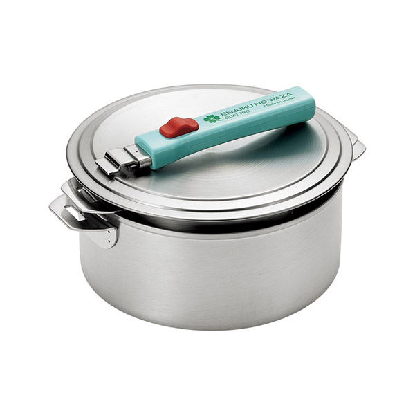 熟練の技巧、信頼の日本製。優れた耐久性と保温性を誇るステンレス鋼。ハンドルは着脱式なので、コンパクトに収納できます。ハンドルとツマミは可愛らしいパステルカラーで、ハンドルには幸運を表す四つ葉のクローバーのロゴ入りです。本体のみ食洗機OK。