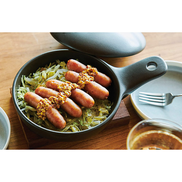 コンパクトサイズの耐熱片手グリルパン。蓋付だから蒸し焼き調理もできます。魚焼きグリルやトースターにも入るので、料理のレパートリーが広がります。そのまま器としても使えるので、熱々のまま食卓に並べることも。レシピ付。