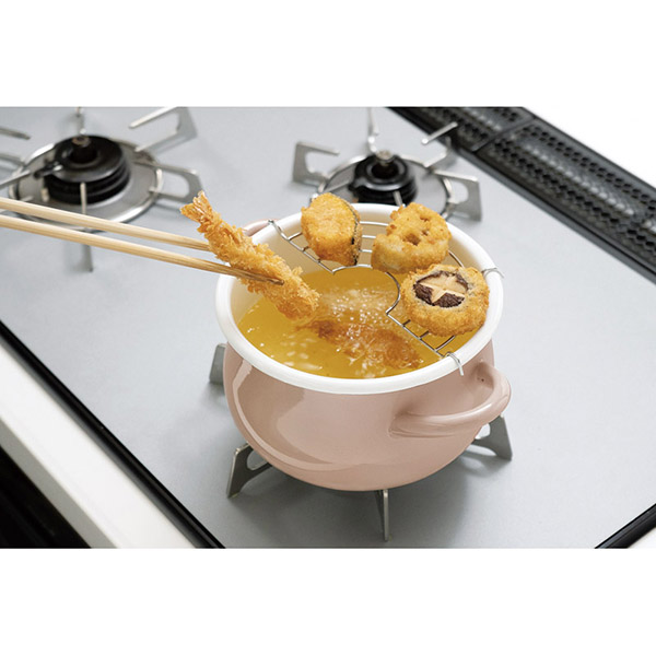 調理から保存までこれ一つでOKのホーロー製のお鍋。揚げ物から煮込み料理、炊飯まで幅広く活躍します。揚げ物をする際の揚げ網や、保存時に便利なシール蓋付。18cmタイプは、お味噌汁で約6杯分、カレーで約4〜5皿分を作ることができます。(食材によって異なるため、目安の分量となります。)