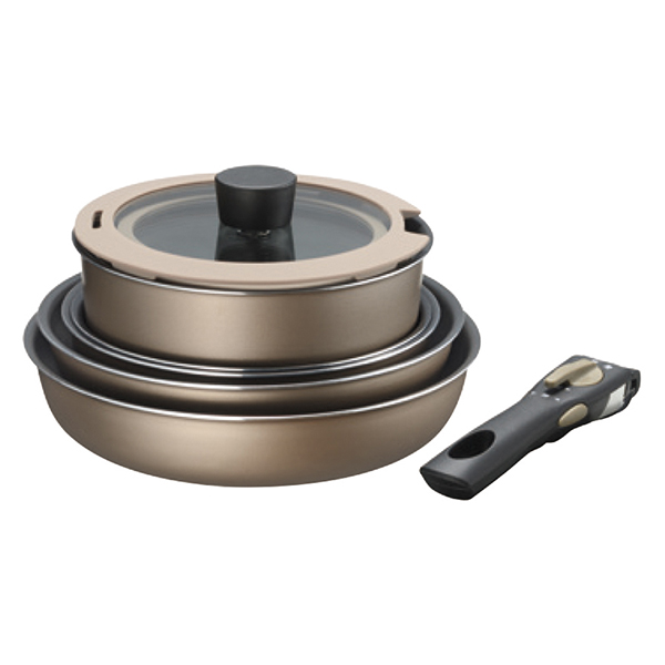 | 内容 | 鍋18cm:φ19.5×8cm(1.9L)・鍋20cm:φ21.5×9cm(2.6L)・フライパン20cm:φ21.5×4.8cm・フライパン26cm:φ27.5×6cm・いため鍋21cm:φ22.5×7cm(2.2L)・ディープパン24cm:φ25.5×7cm(2.7L)・ガラス蓋18cm・ガラス蓋20cm・着脱ハンドル×各1 |