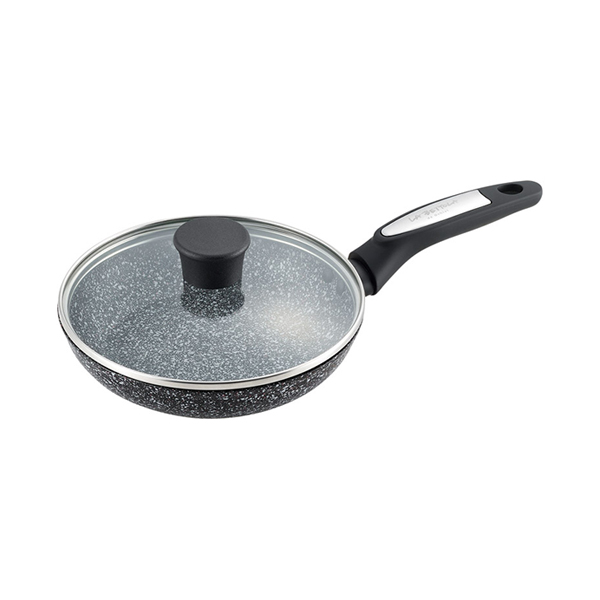 ブラックのベースコートにシルバーと赤のマーブル模様を散りばめて…4層マーブルフッ素で焦げ付きにくさが長持ちします。耐摩耗テスト100万回クリア!!少量の炒め物に活躍する、小回りのきくサイズ。朝食やお弁当作りにも便利です。