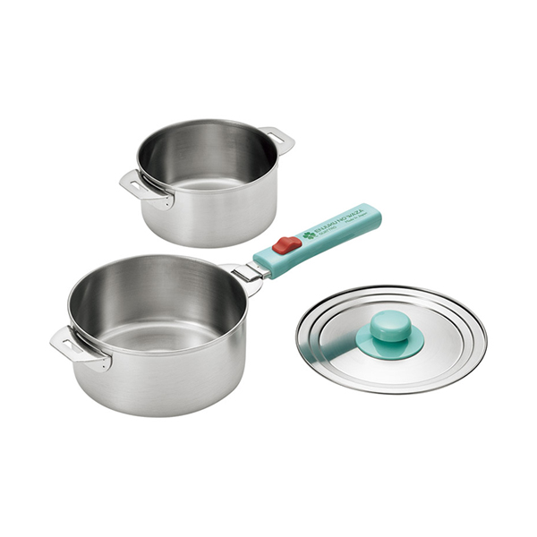 | 内容 | 鍋14cm(約1.1l)(約145×195×73mm)・鍋16cm(約1.6l)(約165×215×78mm)・兼用蓋・着脱ハンドル×各1 |