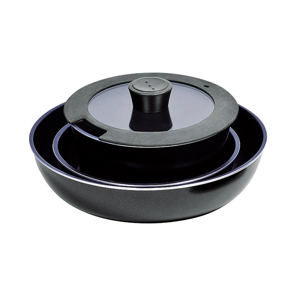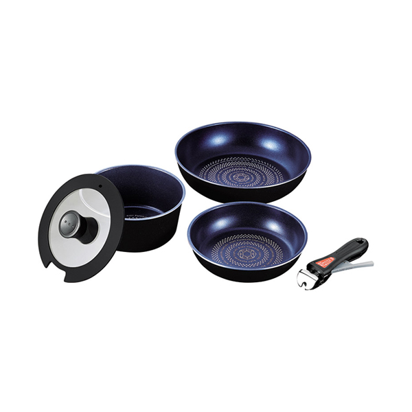 | 内容 | マルチポット18cm(約直径190×85mm)・フライパン20cm(約直径215×50mm)・フライパン26cm(約270×60mm)・着脱ハンドル・ガラス蓋×各1 |