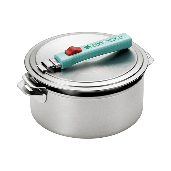 熟練の技巧、信頼の日本製。優れた耐久性と保温性を誇るステンレス鋼。ハンドルは着脱式なので、コンパクトに収納できます。ハンドルとツマミは可愛らしいパステルカラーで、ハンドルには幸運を表す四つ葉のクローバーのロゴ入りです。本体のみ食洗機OK。
