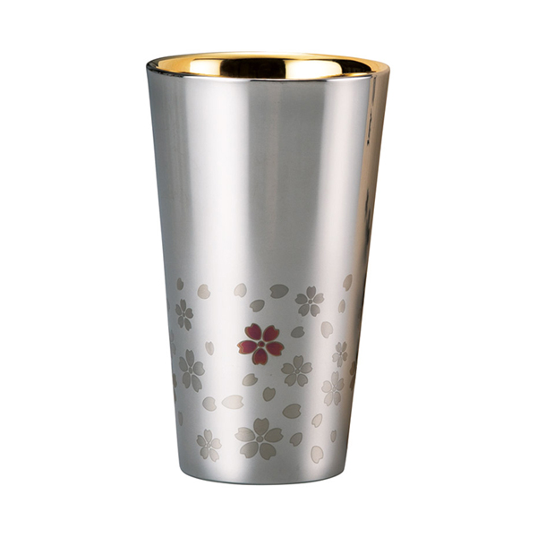 艶やかな越後の花絵巻をイメージした優美な桜柄のステンレスタンブラー。二重構造で保冷力アップ。冷たい飲み物に最適なタンブラーです。美しい鏡面磨きのタンブラーは、特別なひと時にぴったり。飲み物本来の味を楽しめる内面金メッキ仕上げです。