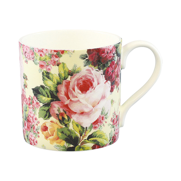 カジュアルで優雅なオールドローズデザインのエインズレイ マグ。電子レンジ・食洗機対応で毎日のティータイムを華やかに彩ります。大切な方への贈り物や、自宅での特別なひとときにぴったりの逸品です。