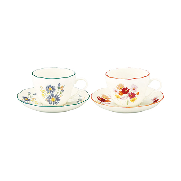 【17%OFF】日比谷花壇 ペアカップ&ソーサーセット(孔雀草・コスモス)|内祝い・お返しギフトならPIARY(ピアリー)