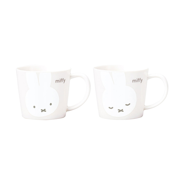 ミッフィーの白いお顔が可愛いペアマグセット。通常のミッフィーと寝ているミッフィーの2種類の柄が楽しめます。淡い色合いで子どもから大人まで幅広く使っていただけるアイテム。。ちょっとしたプレゼントにもぴったりなセットです。