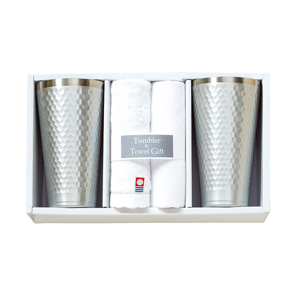 | 内容 | タンブラー:直径8×14.5cm(420ml)×2、今治ウォッシュタオル:28×30cm・マイクロファイバークロス:25×25cm×各1 |