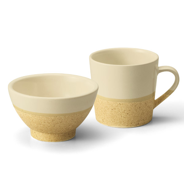 手に取った瞬間、ざらりと心地よい質感。本物のコルクを思わせる温かみのある風合い。淡くやさしい色合いのセミマットの釉薬がサラリと包み込み、静かな上品さを添えます。異なる質感が一つに溶け合い、見て、触れて、毎日の何気ないひとときを豊かにしてくれます。