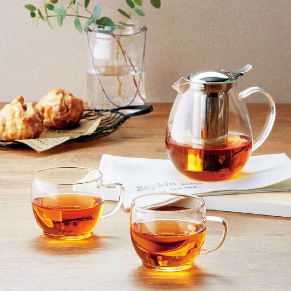 | 内容 | ポット(W13.5×D10×H12.5cm/580ml)×1、カップ(φ8×H6.5cm/150ml)×2、ステンレス製茶こし×1 |