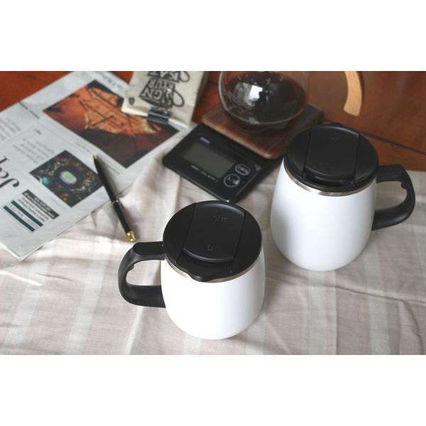 機能的かつシンプルなデザインのマグを愉しむ、素敵なコーヒータイム。