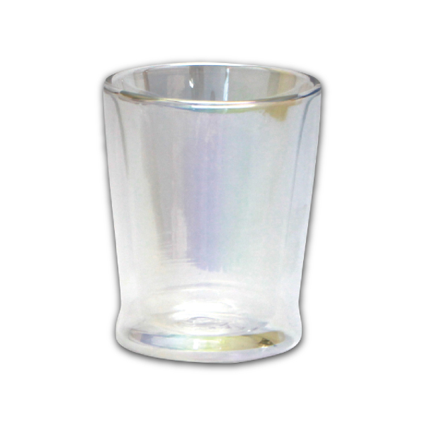 光を当てると、虹色に煌めくラスター色の耐熱グラス。