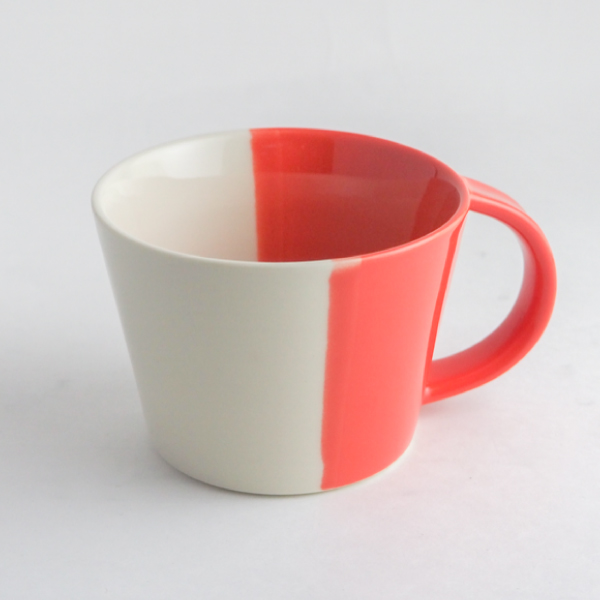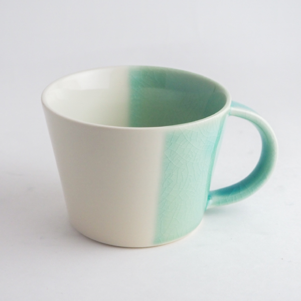 「朱」と「青磁」の2色のマグカップ。300mlと大容量ですが、軽量で持ち手も大きいので老若男女問わず喜んでいただけるマグカップです。