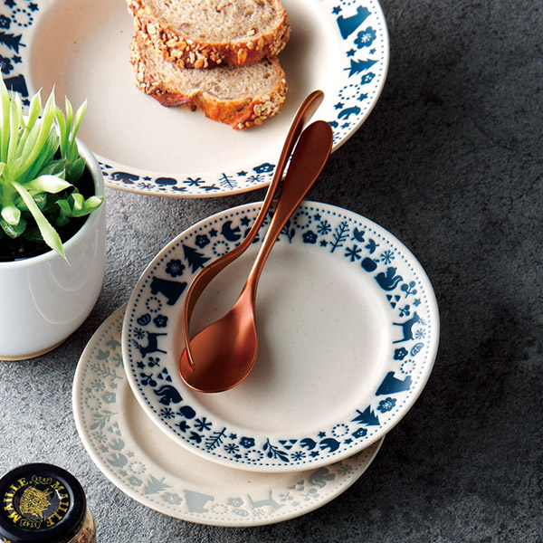白マットの釉薬が温かな印象の可愛いうつわ。森に住む動物の様子を北欧風に描いた彫刻が特徴です。幼すぎない可愛いデザインなので、お子さまから大人まで幅広く喜んでいただけます。電子レンジで使えるのもうれしいポイント。