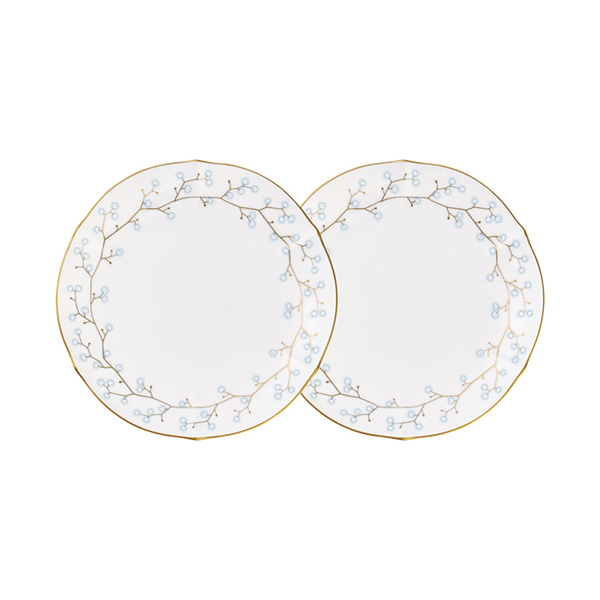 かすみ草をモチーフに白とブルーの花をゴールドで装飾した上品なプレートペア。電子レンジ対応で日常使いもでき、華やかさと実用性を兼ね備えたギフトに最適です。特別な方への贈り物として喜ばれる上質なセットです。