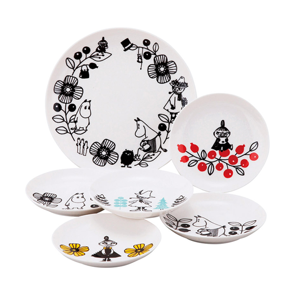 ムーミン谷に住む仲間と豊かな自然を描いたテーブルウェア。モノクロの中にアクセントカラーが入った北欧らしさを感じる大人っぽいデザインなので、大人から子どもまで幅広く使っていただけます。新築祝いや引っ越し祝い、内祝いなどにもおすすめです。