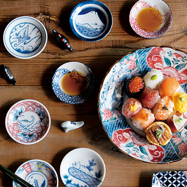 日本の伝統的な文様と地に眠った恐竜たちのコラボレーション!「無事・不死」などの語呂合わせや、末広がりとしても縁起の良いものとされる富士山をモチーフに描かれており、恐竜が幸せを届けてくれそうな可愛らしいデザインになっています。柄違いで揃えてもより華やかな食卓に。集めても楽しいほどまめ皿はいくつあっても嬉しい物です。醤油入れや薬味を置いたりなど多用にお使いいただけます。