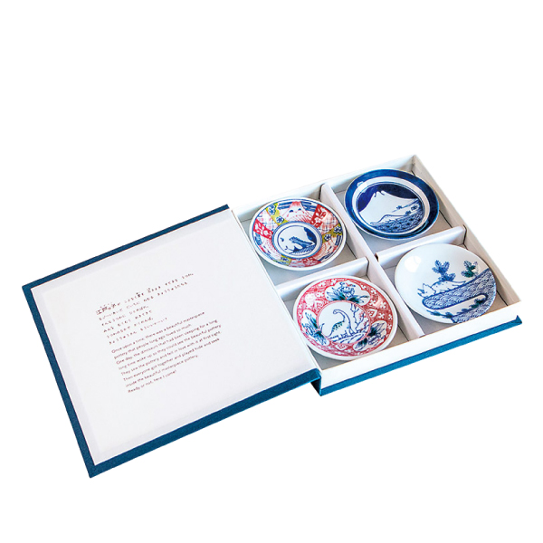岐阜県瑞浪市は、美濃焼の産地として栄えていますが、一方で化石が採れる街としても有名です。古き良き魅力的なの文様のなかに、恐竜がひっそりと潜むユニークなデザインは、大人から子供まで幅広い世代に愛される一皿に。古典柄に可愛らしい恐竜たちが描かれたまめ皿が集まりました。4枚で「し」あわせの意味を込めて、しあわせの訪れを願ったギフトセットです。ブック型の化粧箱にもこだわり、図鑑を開いた時のような特別感とわくわく感あふれるギフトです。しあわせ図鑑は、もらった時に思わず笑顔がこぼれる一品です。