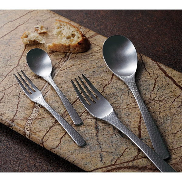 匠の技が冴え渡る、陰影際立つ漆黒のカトラリー。医療用具などにも採用される先進の黒色酸化皮膜加工を施し、優美な色彩を実現しました。塗装やメッキとは違い、剥離して混入する恐れもないため、安心してご使用いただけます。