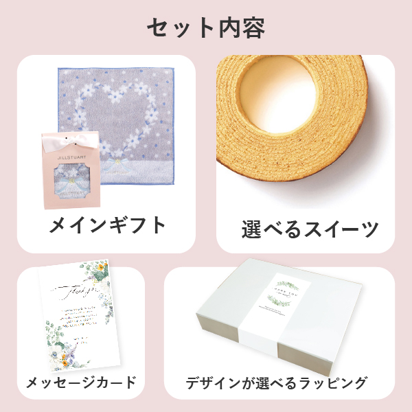 専用ボックスシールがおしゃれ!人気ギフトと選べるスイーツ、オリジナルのメッセージカードが入ったギフトセット。ちょっとしたお礼ギフトや結婚内祝いにおすすめです。