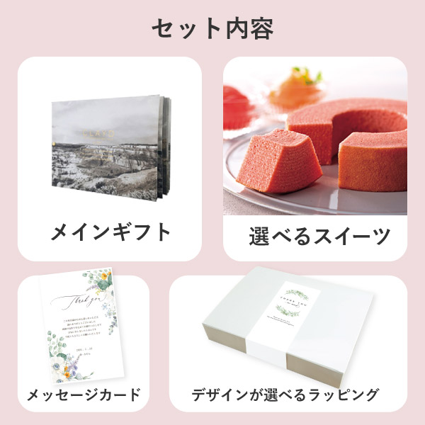 専用ボックスシールがおしゃれ!ちょっとしたお礼ギフトや結婚の内祝いのギフトにおすすめのギフトセットです。人気のスキンケアアイテムをはじめとする人気ギフトと選べるスイーツ、そしてオリジナルのメッセージカードをセットにしたギフトです。