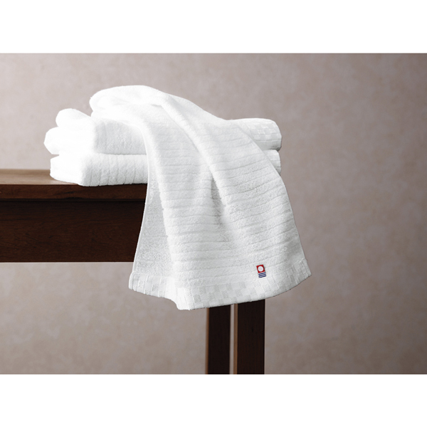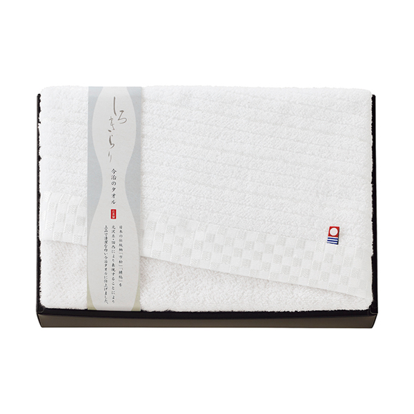 上品な白さの中に光沢糸がきらり。風合いも美しい上質な逸品のタオルです。日本の伝統柄「市松」「横縞」を光沢糸とジャカード織りの凹凸により美しく表現した清潔感あふれるハイクオリティな今治タオル。