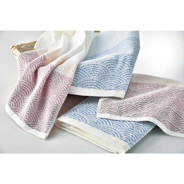 大阪・泉州の後晒製法により清潔感のある吸水性の良いタオルに仕上がりました。広大な海原をイメージしたやわらかいタオルです。タオルを織る工程の一番最後に漂白、水洗いをする製法のため、余計なものが一切ない清潔で安全なタオルになります。