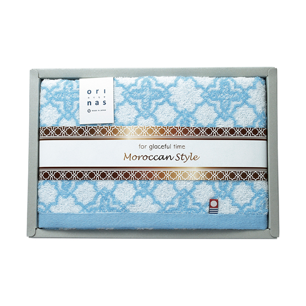 モロッカンスタイルのタイルをモチーフにした爽やかでラグジュアリーな雰囲気のあるデザイン。機能性と優しい肌触感が特徴の今治タオルです。男女問わず幅広い世代の方への贈り物におすすめです。