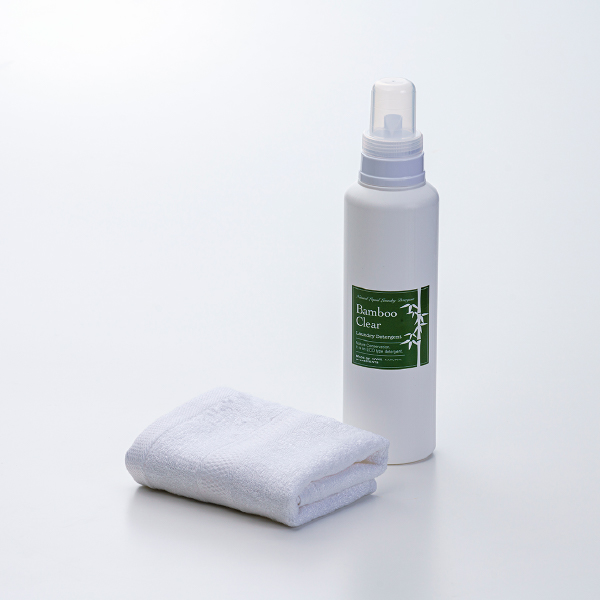 原材料は「竹炭、竹炭灰、湧水」だけの究極にシンプルな「Bamboo Clear」は日本の竹から独自の自然抽出製法で1ヶ月時間をかけて丁寧に作った天然成分100%の無添加洗濯用竹洗剤。界面活性剤、香料、着色料、化学物質は一切含まれていませんので敏感肌の方でも安心してご利用いただけます。