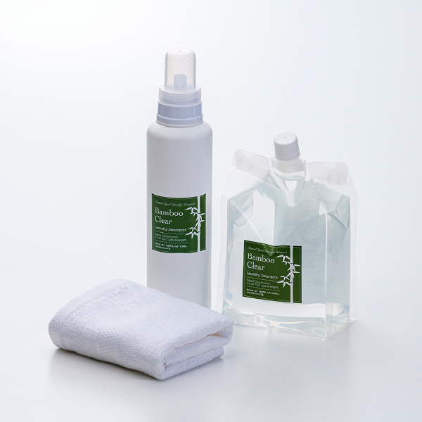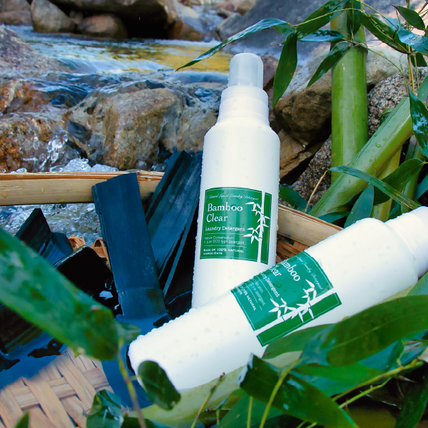 原材料は「竹炭、竹炭灰、湧水」だけの究極にシンプルな「Bamboo Clear」は日本の竹から独自の自然抽出製法で1ヶ月時間をかけて丁寧に作った天然成分100%の無添加洗濯用竹洗剤。界面活性剤、香料、着色料、化学物質は一切含まれていませんので敏感肌の方でも安心してご利用いただけます。
