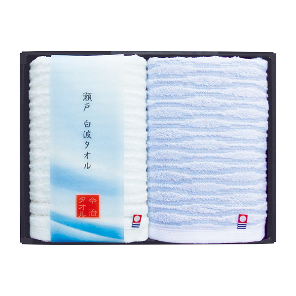 今治のジャガード織で仕上げた「瀬戸 白波タオルセット」。湧き水や瀬戸内の白波の美しさを繊細に表現し、上質な肌触りとデザイン性を兼ね備えたタオルギフト。日常を彩る特別な贈り物に最適です。